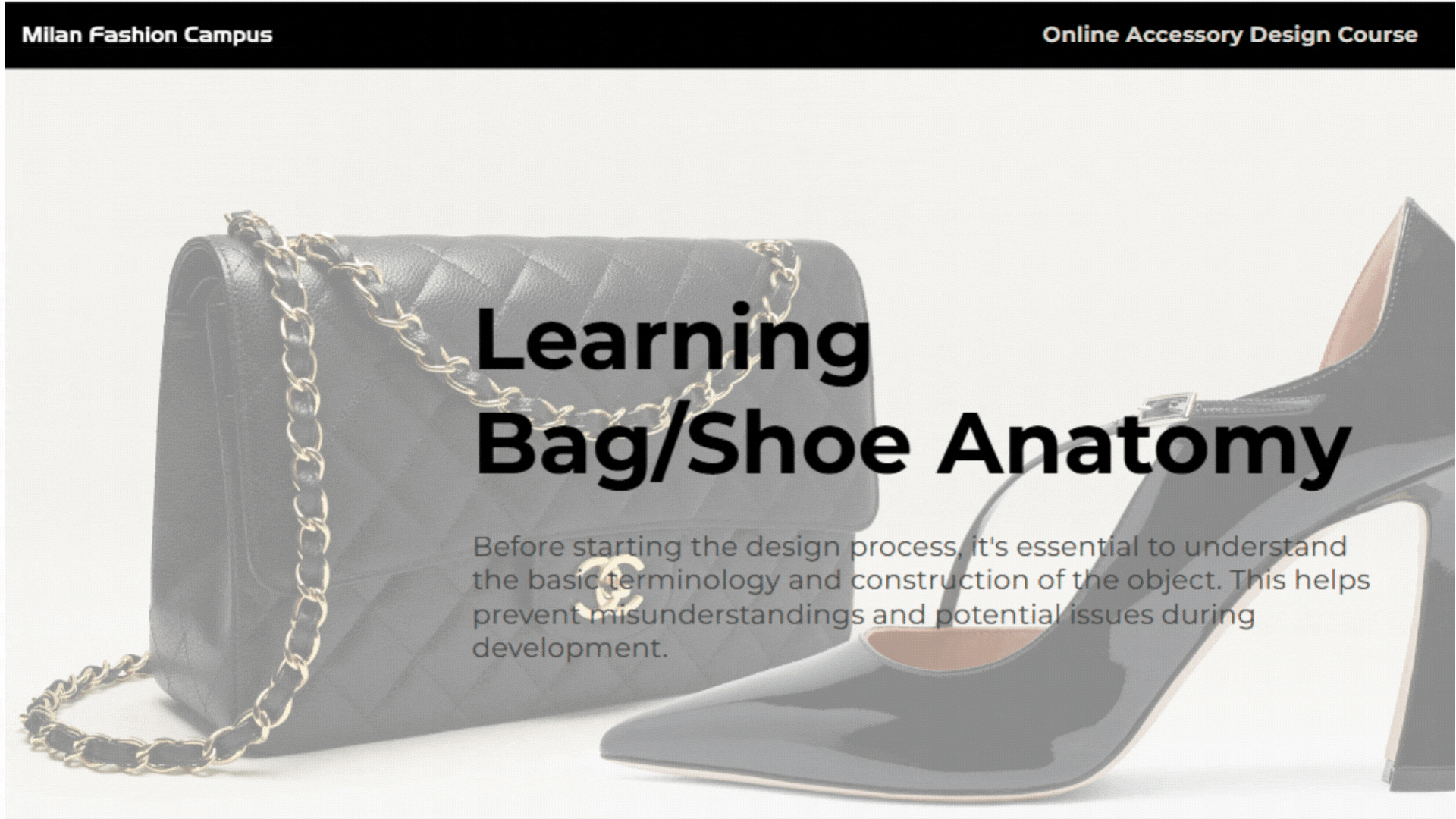 This course is perfect to start learning how to develop designs for a shoe or bag collection. You will learn the basics of drawing and how to make a mood board.