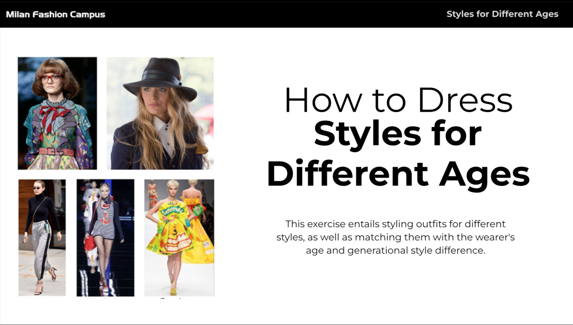 In module B you'll learn about the different Fashion styles, which are the key items for each one, so you can create new looks mixing the right accessories, color or material depending on your inspiration and mood you would like to achieve.