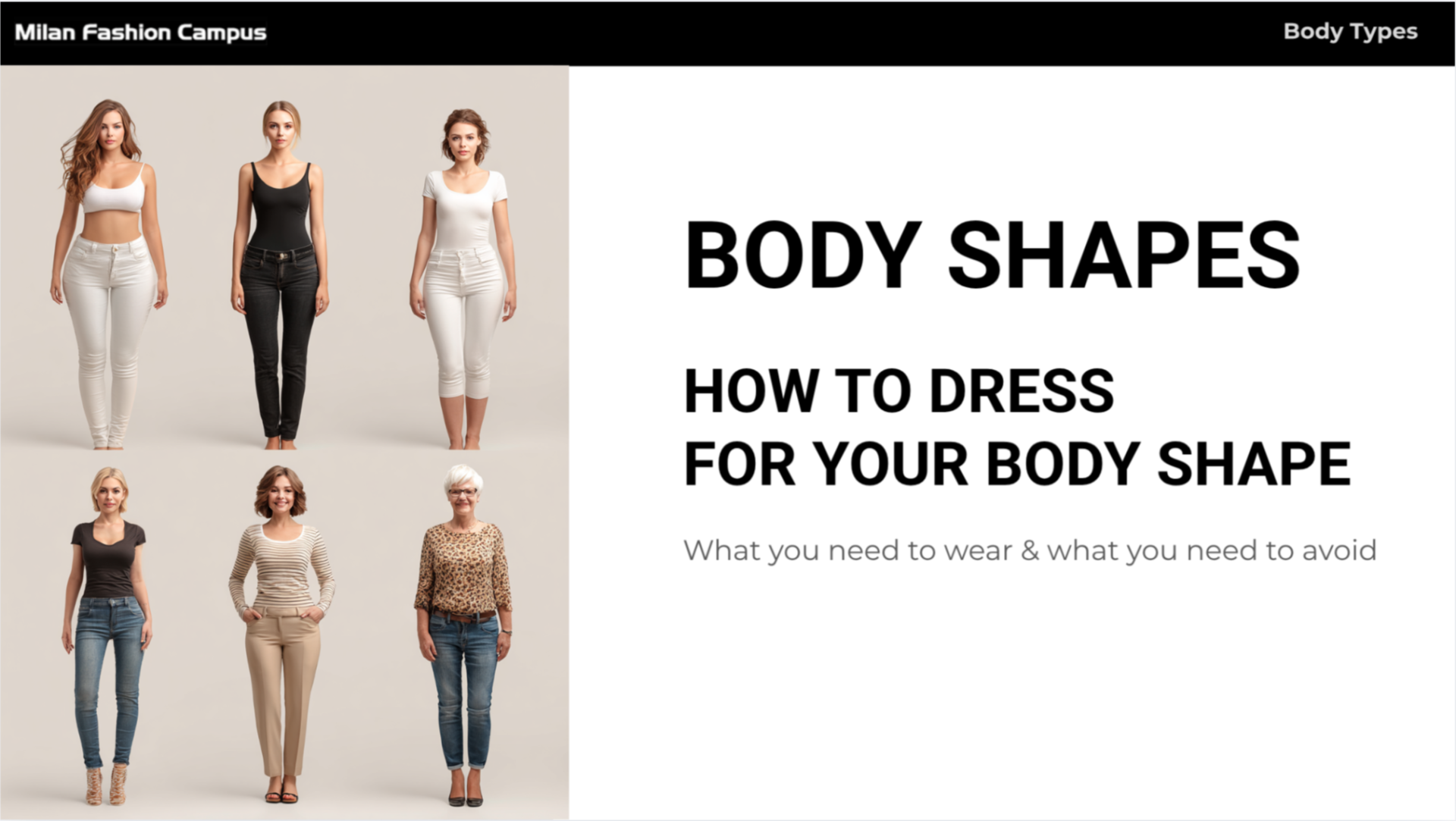 The first step towards the Fashion industry and image consultant career, in this first module, you'll see more the personal styling side, how to identify the different body shapes, face shapes and color analysis to dress your clients accordingly to enhance their best qualities.